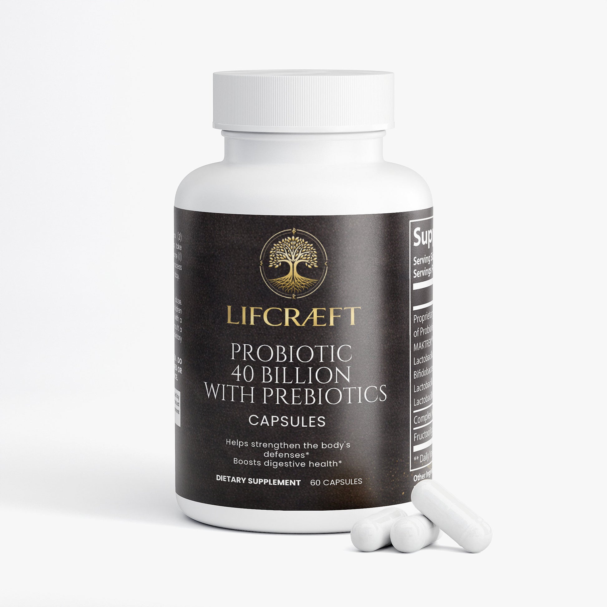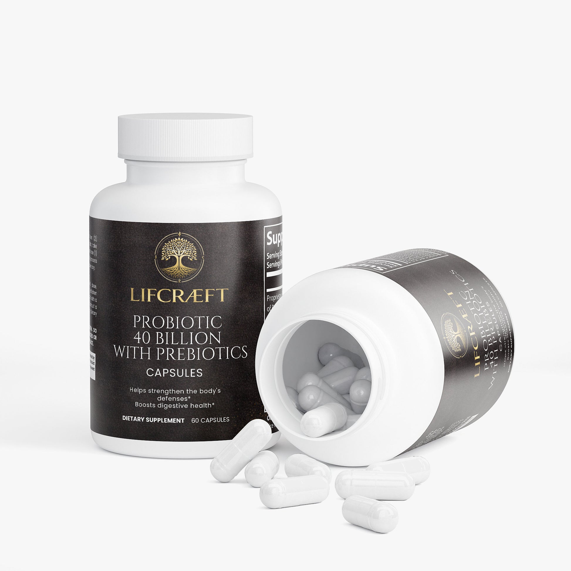 Probiotic 40 Billion with Prebiotics is a blend of four probiotic strains: Lactobacillus Acidophilus, Bifidobacterium Lactis, Lactobacillus Plantarum, and Lactobacillus Paracasei.
